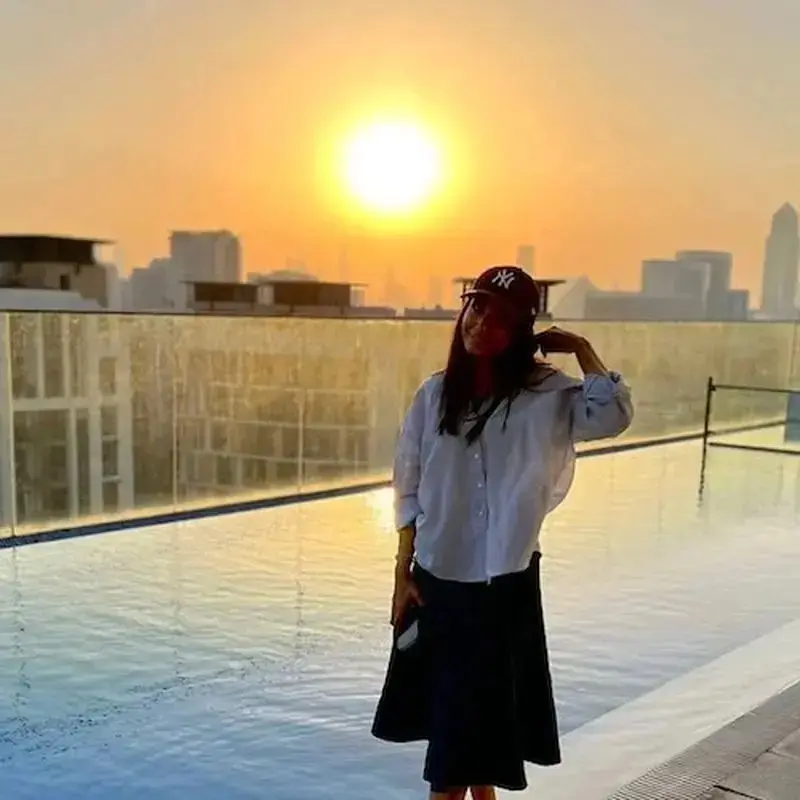 در این تصاویر، او دامن میدی سرمهایرنگ را با شومیز راهراه آبی و سفید ست کرده است، استایلی کژوال و در عین حال هماهنگ با هوای گرم دبی. رنگهای خنک و فرم آزاد لباسها، همراه با آرایش کمتوقع و موهای ساده، ظاهری طبیعی و بیپیرایه به او بخشیده است. این نشان میدهد که حسنپور همچنان در کنار استعداد بازیگری، در انتخاب استایل نیز ذوق و هویت شخصی خود را نشان میدهد.