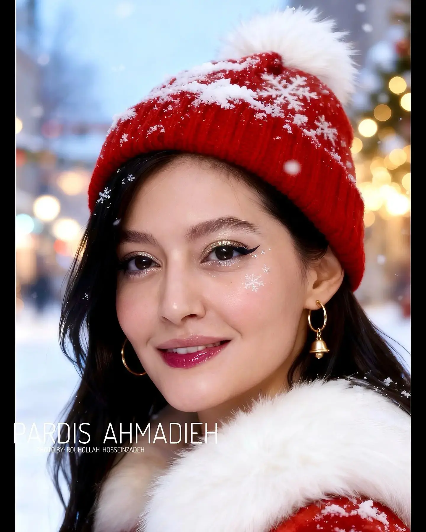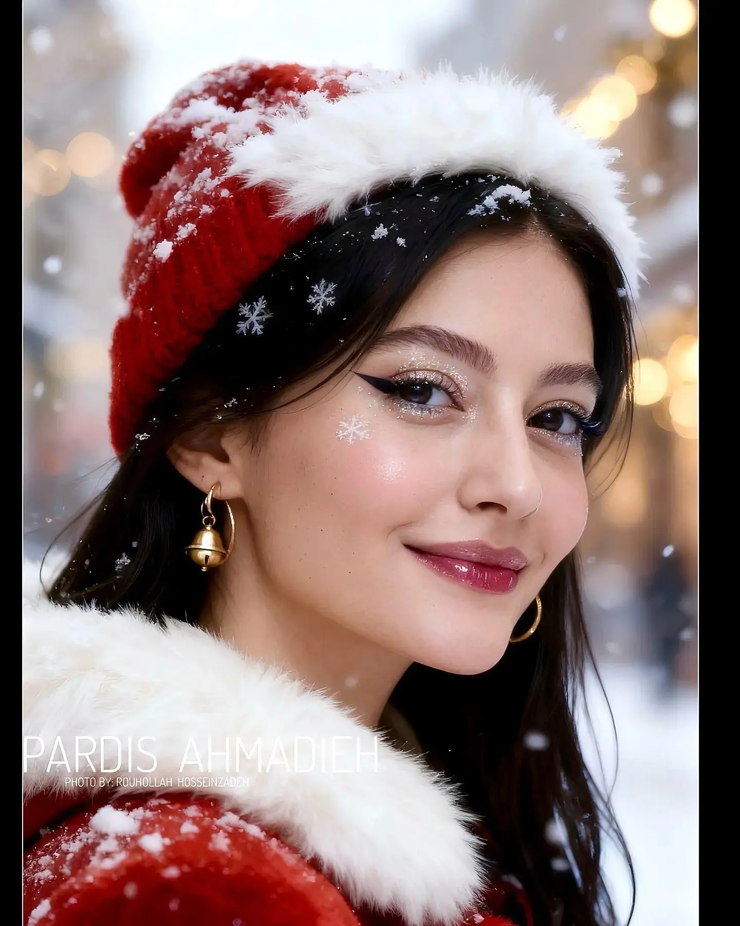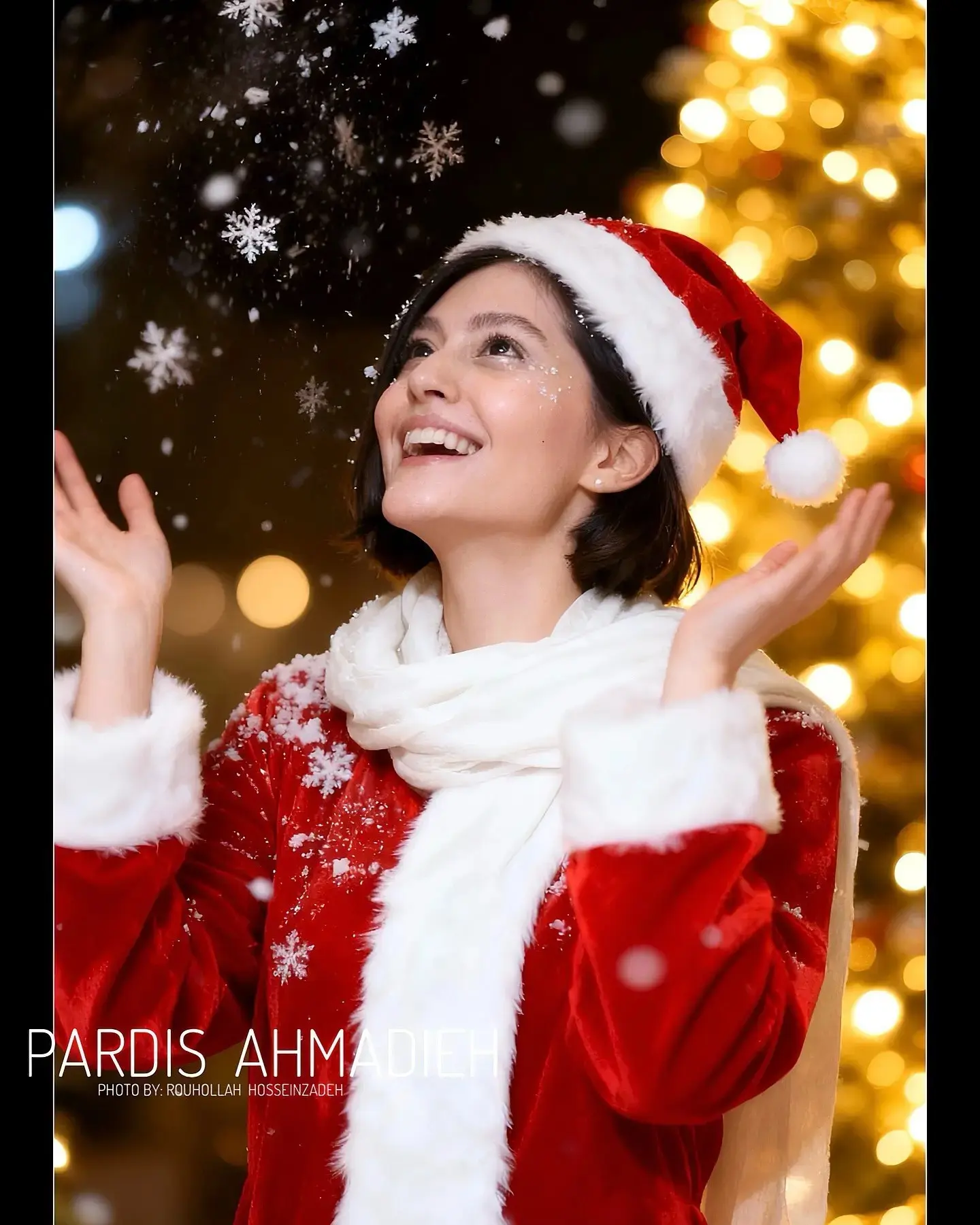 پردیس احمدیه در تصویر فانتزی با لباس بابانوئل، ساخته شده توسط هوش مصنوعی و طراحی روحالله حسینزاده، در کنار عکسهای جدید خود منتشر کرد.