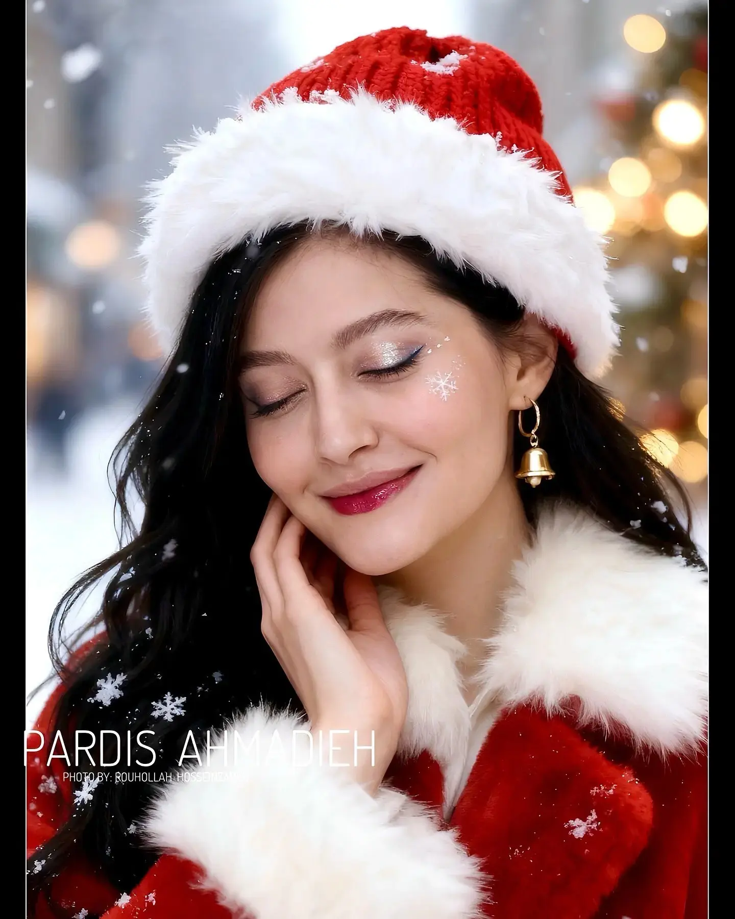 تصویر فانتزی پردیس احمدیه در لباس بابانوئل با کمک هوش مصنوعی؛ عکسهای جدید بازیگر «از یاد رفته»