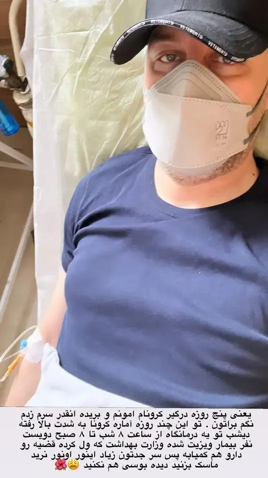 باربد بابایی، مجری سابق تلویزیون، با انتشار عکسی از خود در کنار تخت بیمارستان، وضعیت جسمانی نامناسب خود را در اثر ابتلا به کرونا اعلام کرد.