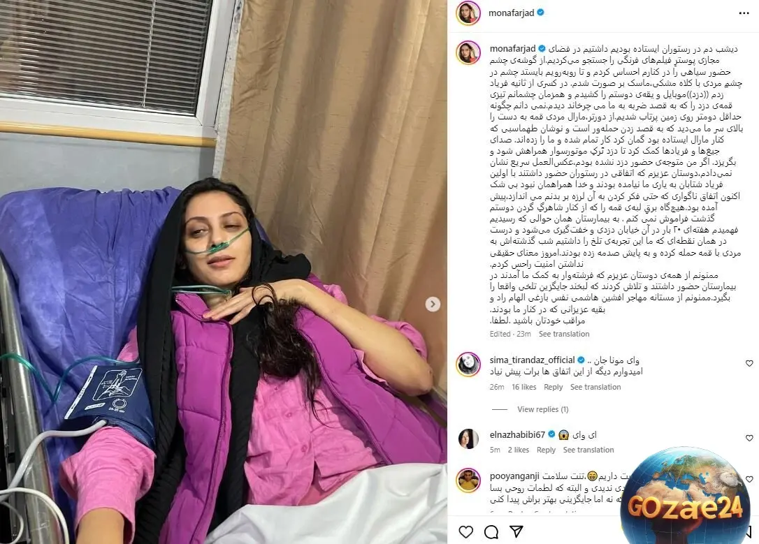 حادثه تلخ برای مونا فرجاد، بازیگر مشهور ایرانی، او راهی بیمارستان شد. جزئیات بیشتر در خبرهای بعدی.