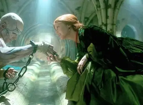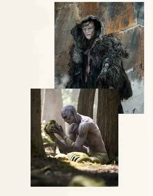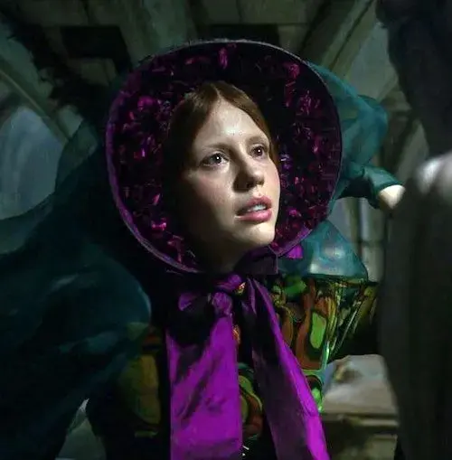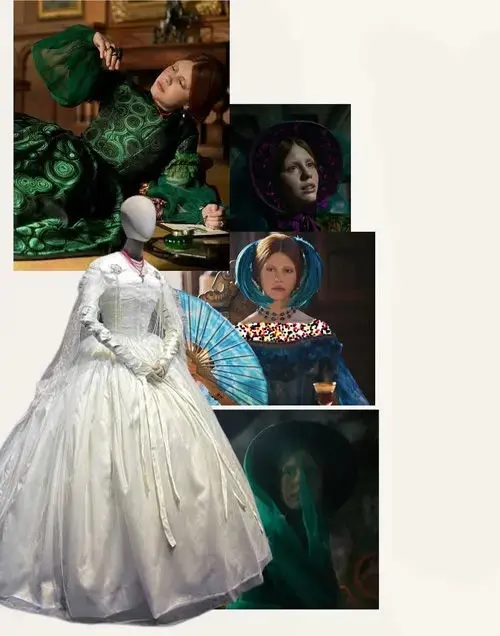 در ابتدا، الیزابت با فرمهایی نرم و دایرهای ظاهر میشود؛ لباسها و گردنبندهای او الهامگرفته از بالهای حشرات یا اشکال هنر نو هستند که همانند موجودات زنده نفس میکشند. این فرمها حس لطافت و همدلی را به او منتقل میکنند. اما در طول فیلم، پوشش او تغییر میکند؛ از رنگها و عناصر ارگانیک گرفته تا حجمهایی که به نوعی بازسازی آناتومیک و اشاره به پیوند او با مخلوق است. لباس عروس او با چندین لایه ارگانزا و روبانهایی که مانند باندها دور دست پیچیده شدهاند، نماد ساختن و همپوشانی هویتها است. طراحان عمداً لباس او را از داخل به بیرون طراحی کردند تا نشان دهند که در پایان، الیزابت بیش از آنکه بازتاب ویکتور باشد، بازتاب مخلوق است.