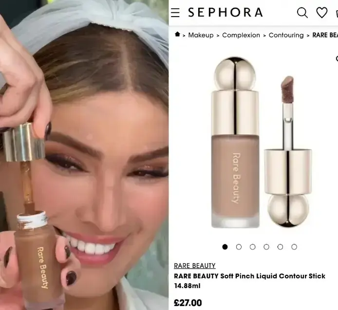 در مرحله بعد، برای تکمیل آرایش، از کانتور برند محبوب رِر بیوتی بهره گرفته شد. این محصول نیز قیمت تقریبی حدود ۴ میلیون تومان دارد. ترکیب این دو کانتور، ظاهری عمیق و جذاب به صورت او بخشید و میکاپی بینقص و حرفهای را رقم زد.