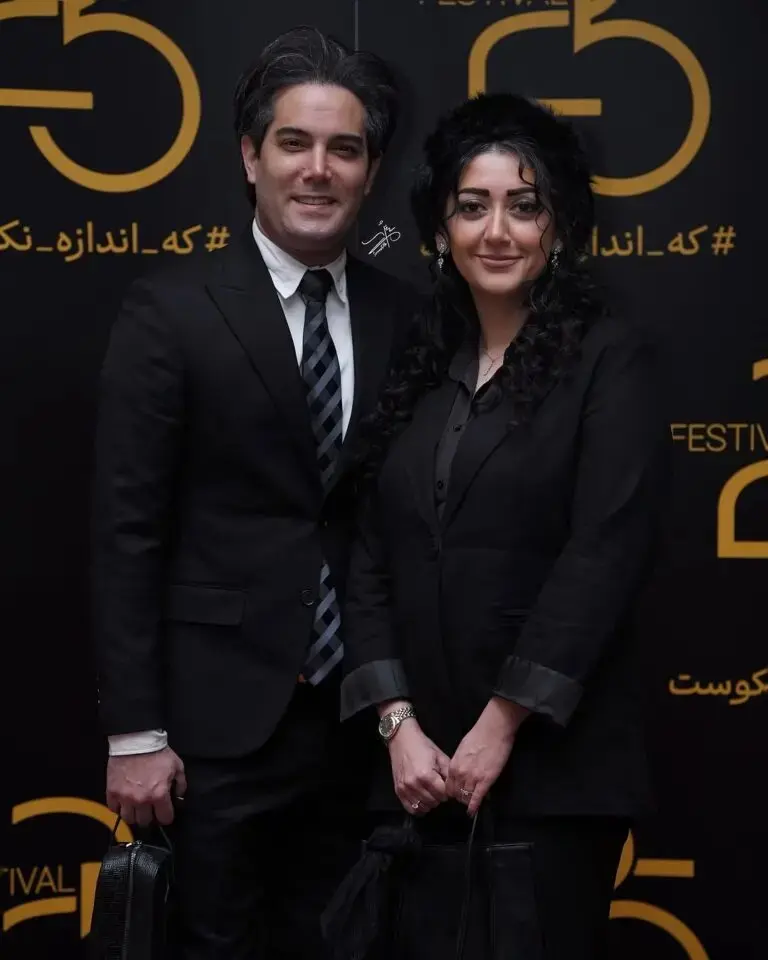 استایل بینظیر امیرعلی نبویان و همسرش در جشنواره ۲۵ با موهای فرفری و لباس مشکی