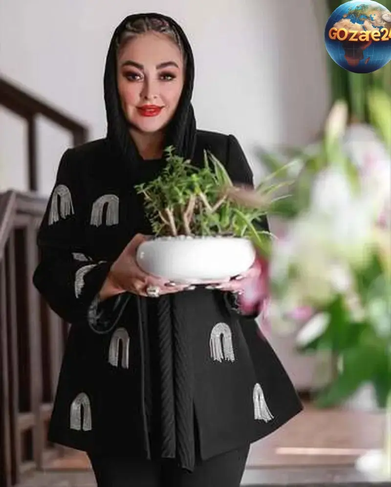 در این عکسبرداری خاص، الهام حمیدی با پوشیدن یک پالتوی کوتاه مشکی با طراحیهای خاص، توجهها را به استایل شیک و مدرن خود جلب کرده است. جزئیات چشمنواز این لباس با نگینهای درخشان و طراحیهای زیبا، جلوهای خاص و باوقار به این ستاره سینما بخشیده است.
