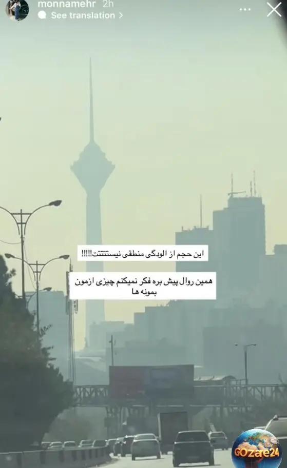 مونا مهرجویی، دختر کارگردان مرحوم سینمای ایران، داریوش مهرجویی، در واکنش به وضعیت بحرانی آلودگی هوا در تهران، پیامی انتقادی منتشر کرد. او در این پیام ضمن ابراز نگرانی درباره پیامدهای جدی آلودگی هوا بر سلامت شهروندان، بر غیرمنطقی بودن ادامه این وضعیت تأکید کرد و خواستار اقدام فوری و برنامهریزی منسجم شد.