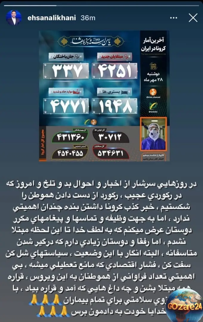 یادی از روزهای سخت برزخی احسان علیخانی در دوران کرونا