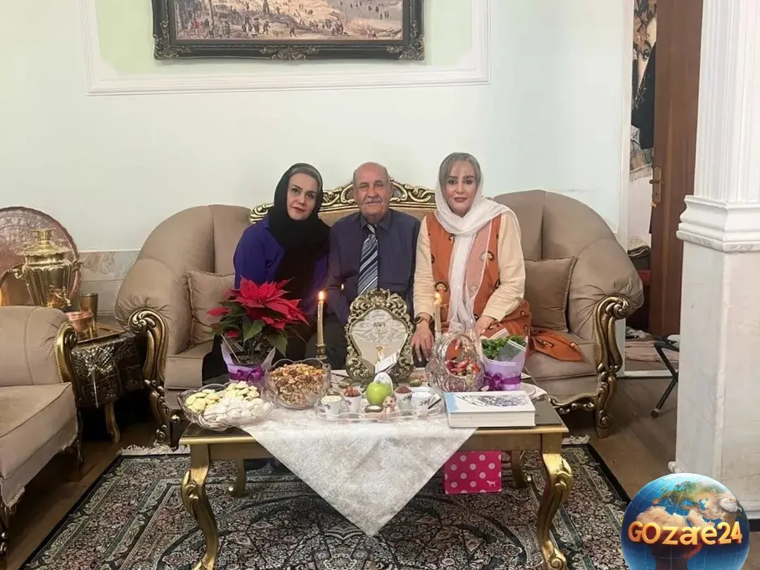 خانه پدری شیوا خسرو مهر در تصاویر، فضایی ترکیبی از سنت و گرما و صمیمیت را به نمایش میگذارد. مبلمان طلایی با دستههای منبتکاری شده و پارچههای کرمرنگ، حس کلاسیک و اصیل را به نشیمن میبخشد. روی میز پذیرایی، سفرهای سفید پهن شده است که بر آن شیرینی، آجیل، میوه و شمعهای روشن قرار دارد، فضایی دلنشین و خانوادگی را ایجاد کرده است. حضور گلهای طبیعی و کتابها بر میز، نشانگر دقت به جزئیات و ارزش قائل شدن برای زیبایی و فرهنگ است. فرش ایرانی در کف اتاق، هویت سنتی فضا را کامل میکند.