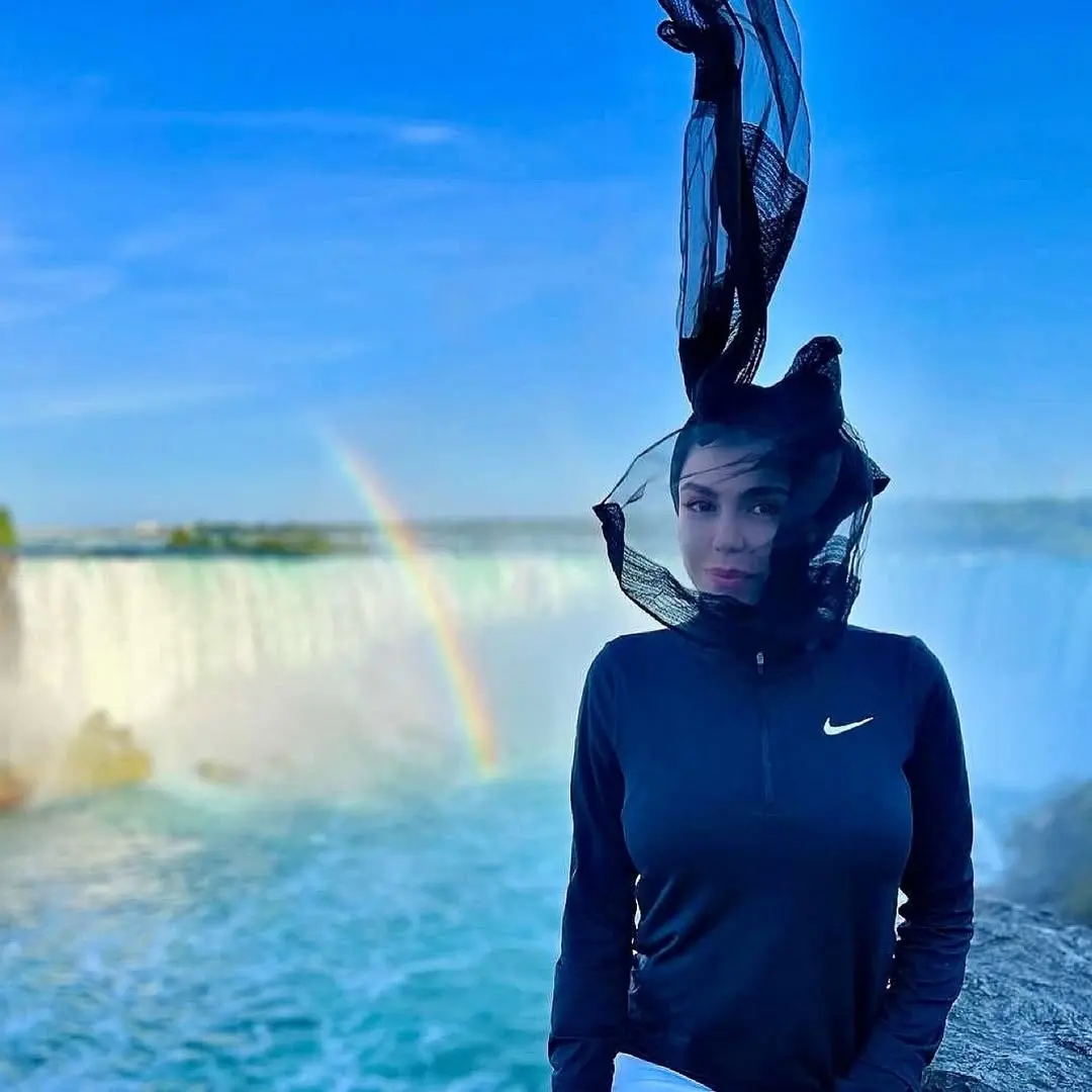 آزاده زارعی با استایل متفاوت در کنار آبشار نیاگارا!