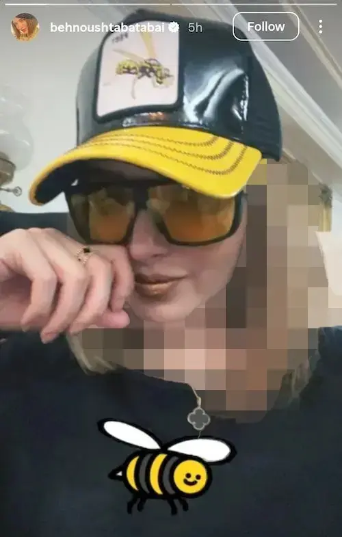این ترکیب رنگ، همنشانی از شادی و انرژی زرد را با عمق و ظرافت مشکی تلفیق میکند و نمایی مدرن و متفاوت از شخصیت او ارائه میدهد. در ارتباط با این ترکیب رنگ خاص، بهنوش با استفاده از شکلک زنبور در استوریاش، خود را به زنبور شباهت داده است.