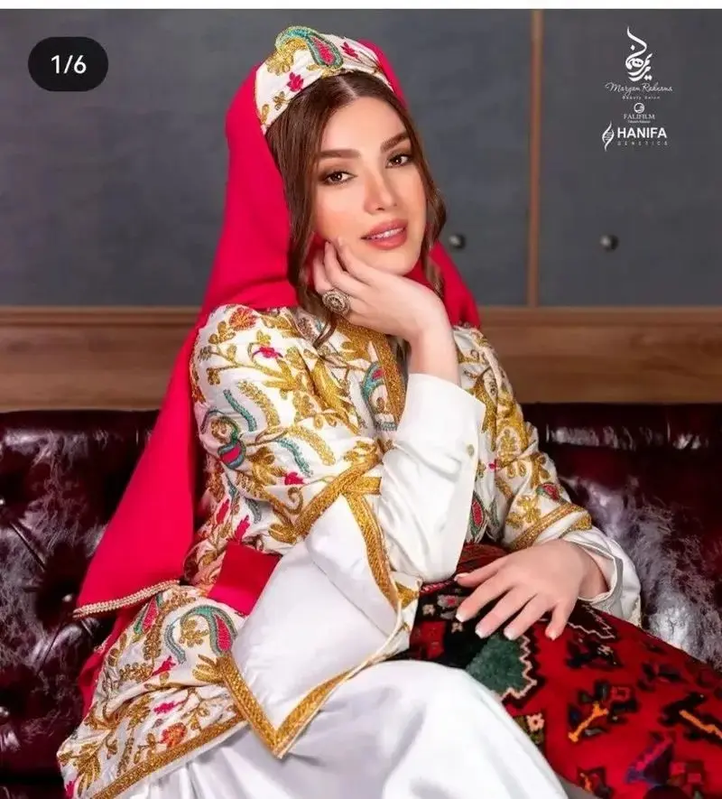 تصویر استایل جدید متین ستوده با لباس سنتی الهامگرفته از خانمهای قاجاری پس از ازدواج با کامران تفتی، نشاندهنده تغییر در سبک او است.