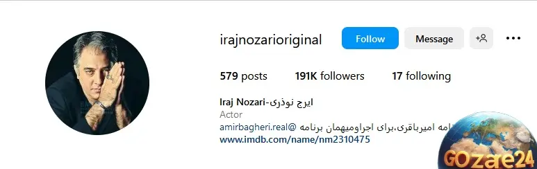 ایرج نوذری از طریق حساب کاربری خود در اینستاگرام با نام کاربری irajnozarioriginal با دنبالکنندگانش در ارتباط است.