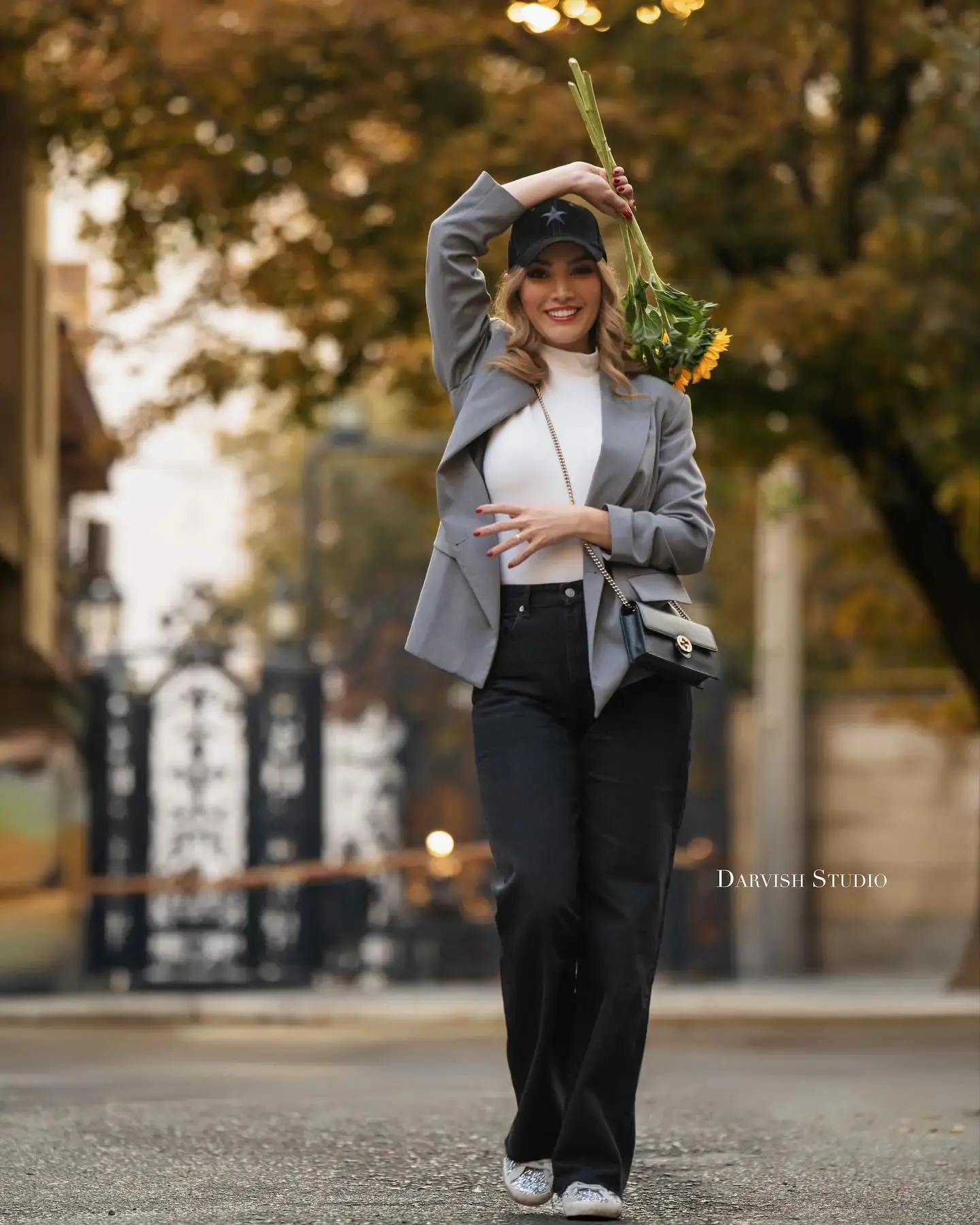 استایل پاییزی متین ستوده، تازه عروس سینمای ایران با کلاه کپ و کت شلوار در بهترین حالت