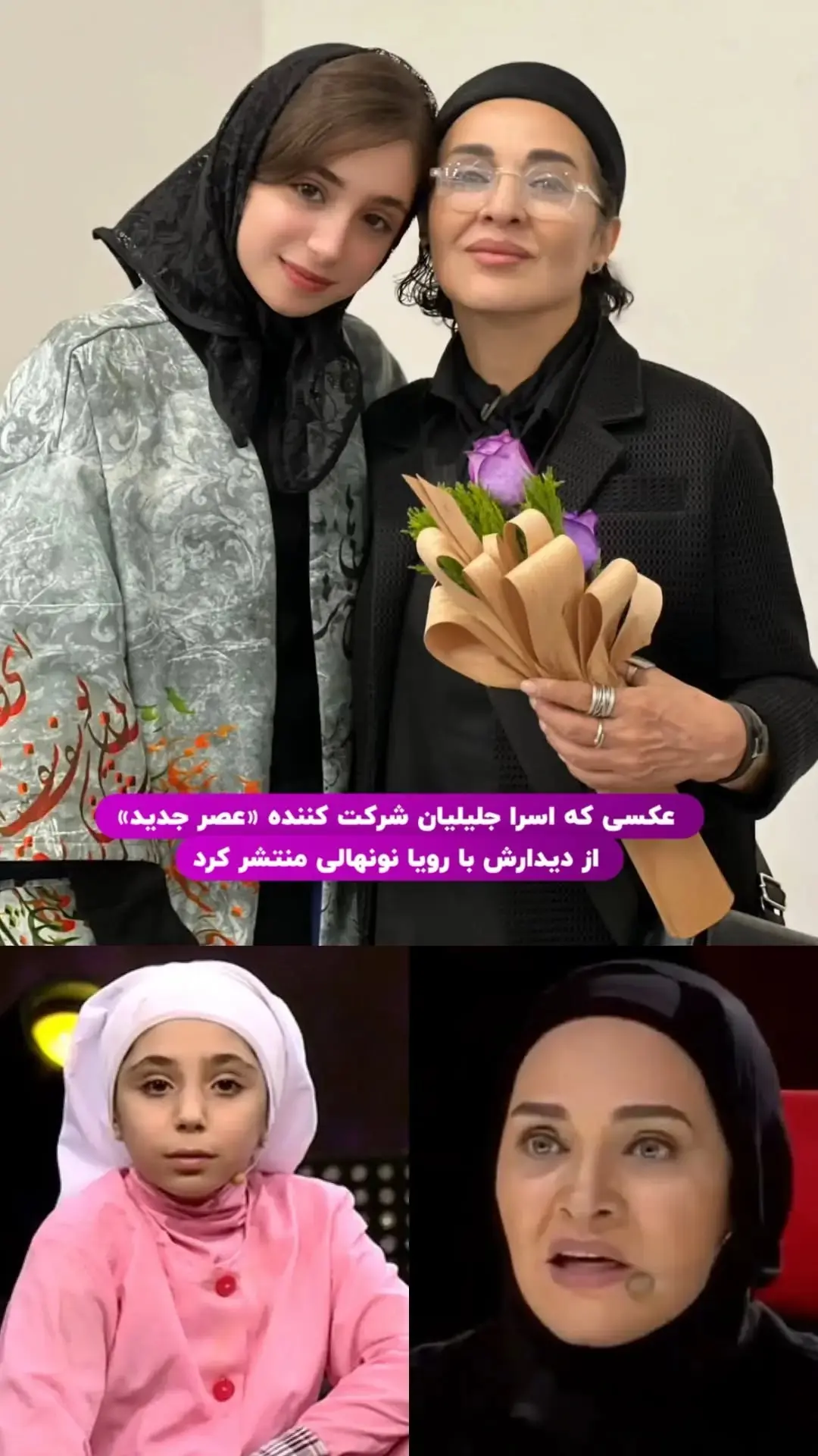 رویا نونهالی، بازیگر معروف سینما و تلویزیون، در صفحه اینستاگرام خود عکسی از دیدارش با اسرا جلیلیان، نوجوان و استعداد برتر برنامه «عصر جدید»، منتشر کرد. این تصویر به سرعت مورد توجه کاربران قرار گرفت. بسیاری از دنبالکنندگان با تحسین این ارتباط و حمایت نونهالی از نسل جوان هنرمند، این پست را نمادی از توجه او به آینده هنر کشور دانستند.