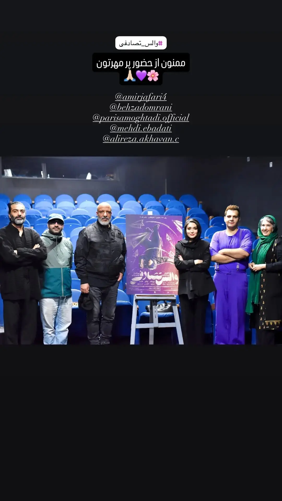 امیر جعفری، بازیگر شناختهشده سینما و تلویزیون، اخیراً در تماشای نمایش «والس تصادفی» با بازی فرزانه قاسمزاده حضور یافت و حضور او در سالن توجهها را جلب کرد. پس از پایان اجرا، فرزانه قاسمزاده با انتشار پیامی از امیر جعفری بهخاطر حمایت و دیدن این اثر قدردانی کرد؛ اقدامی که به گفته او، انگیزهبخش برای عوامل نمایش بود و شب اجرای را ارزشمندتر کرد.