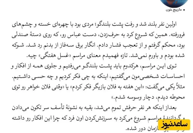 کتاب «مارپیچ خون» رازهای مخفی و شکنجههای روانی در تشکیلات منافقین، شامل جلسات اجباری غسل هفتگی و اعترافات جنسی در حضور جمع، را فاش میکند.