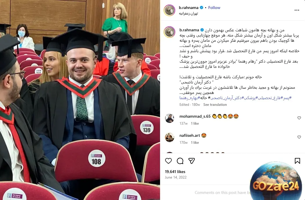 بهاره رهنما محبت خود را به خواهرزاده جوانترین پزشک کشور ابراز کرد و خبر فارغالتحصیلی او را همراه با عکس در اینستاگرام به اشتراک گذاشت.