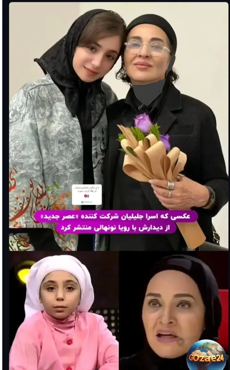 تصویری از اسرا جلیلیان، شرکتکننده برنامه عصر جدید، در دیداری با رویا ونهالی منتشر شده است که تغییر قابل توجه در ظاهر او در آن مشاهده میشود.