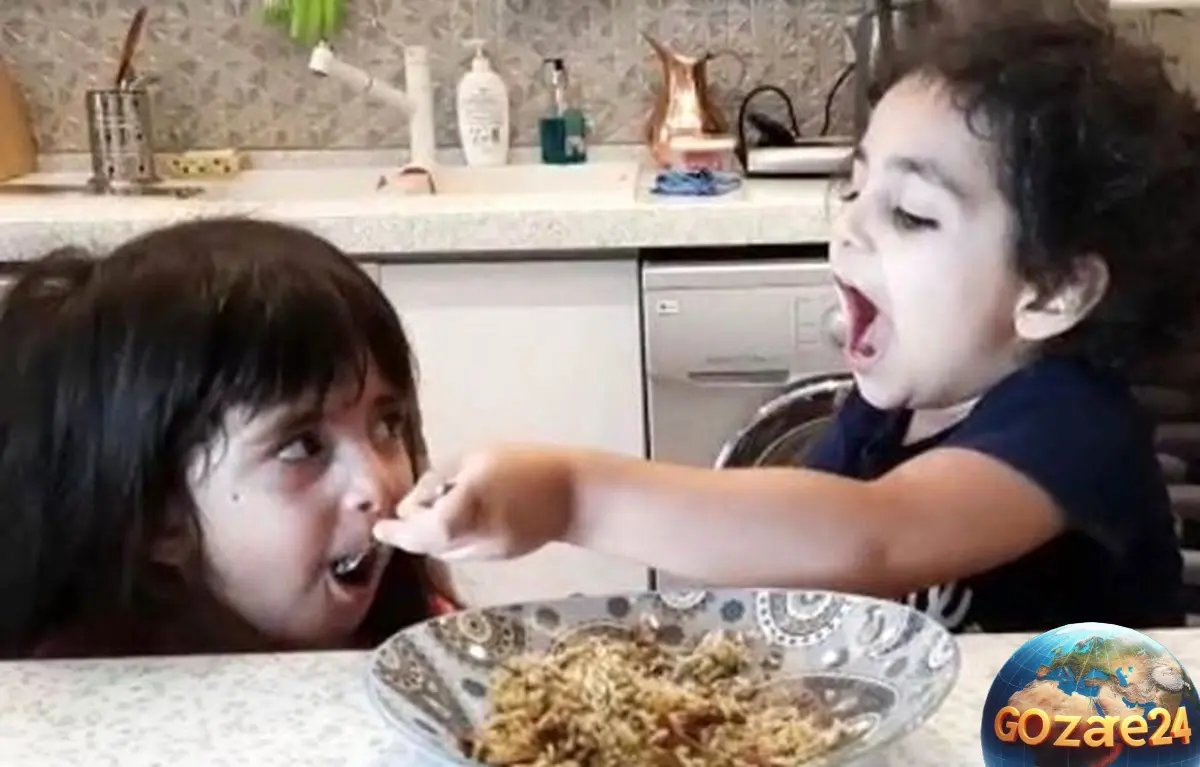 منوچهر هادی با انتشار این تصویر نوشت: گوشگله پدر دارد به دخترخالهاش سیلوانا غذا میدهد. فقط دهان خودش را ببینید، ای خدااااااااااااااا...