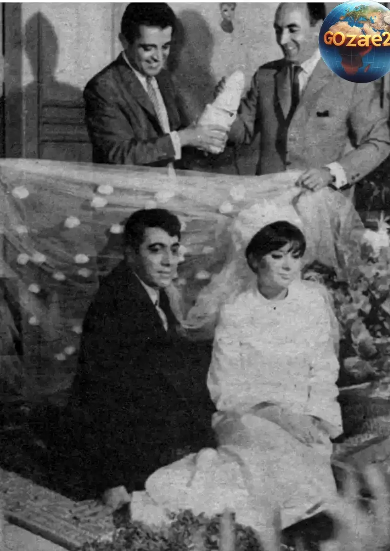 تصویر جذاب و دیدنی از علی تابش و حمید قنبری را نشان میدهد که در سال ۱۳۴۶ در حال قند ساییدن بر سر گلپا و همسرش هستند.