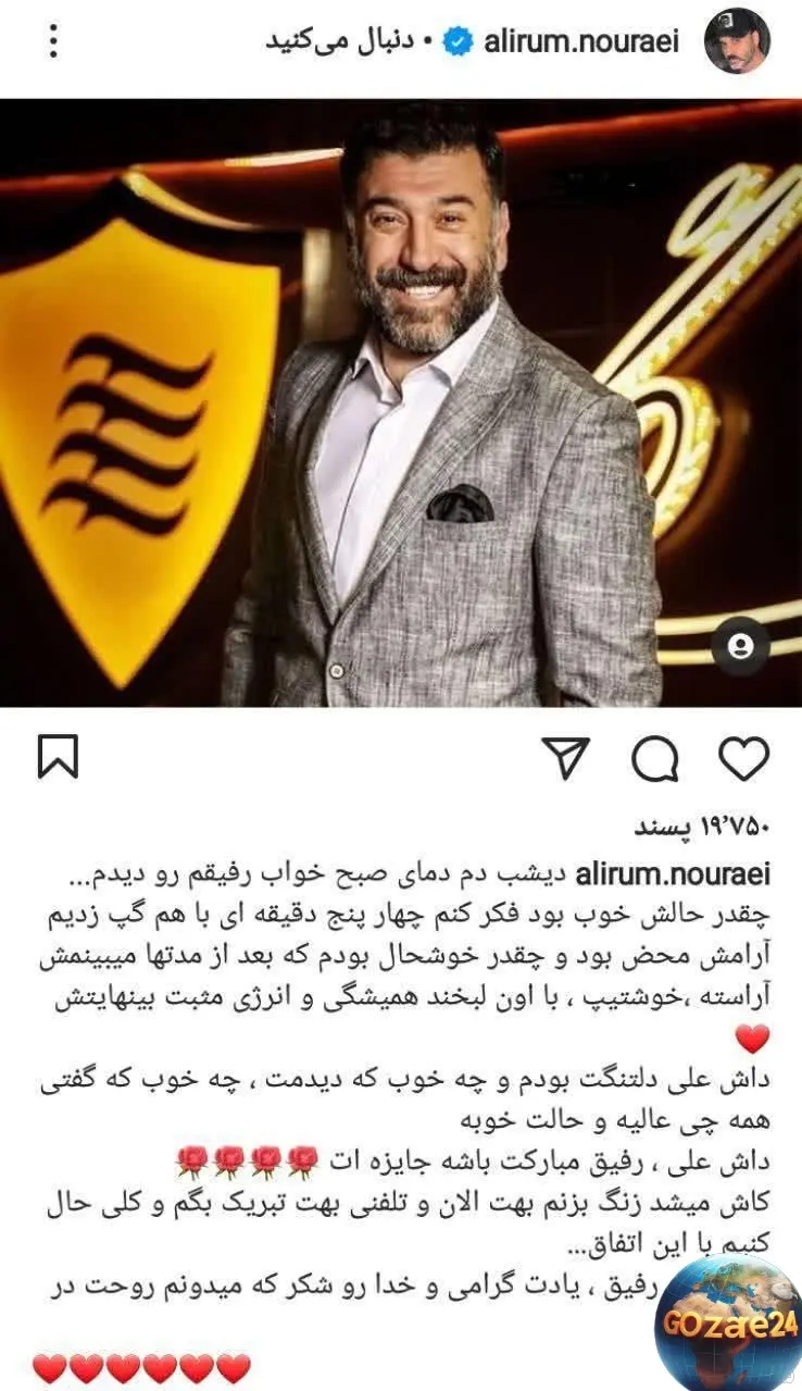 علیرام نورایی در پستی احساسی از علی انصاریان گفت، خواب آرام و دلتنگی بازیگر سینما و تلویزیون را به اشتراک گذاشت.