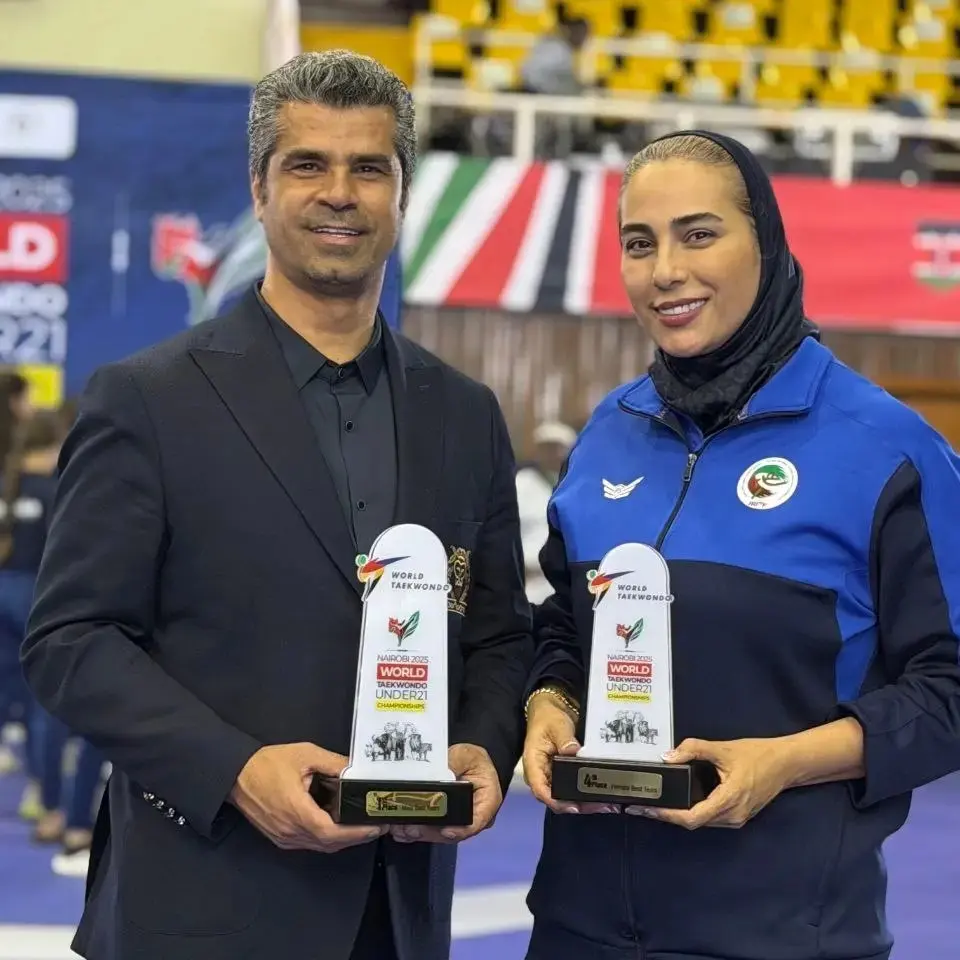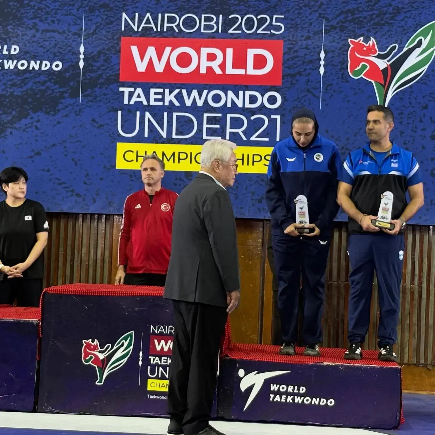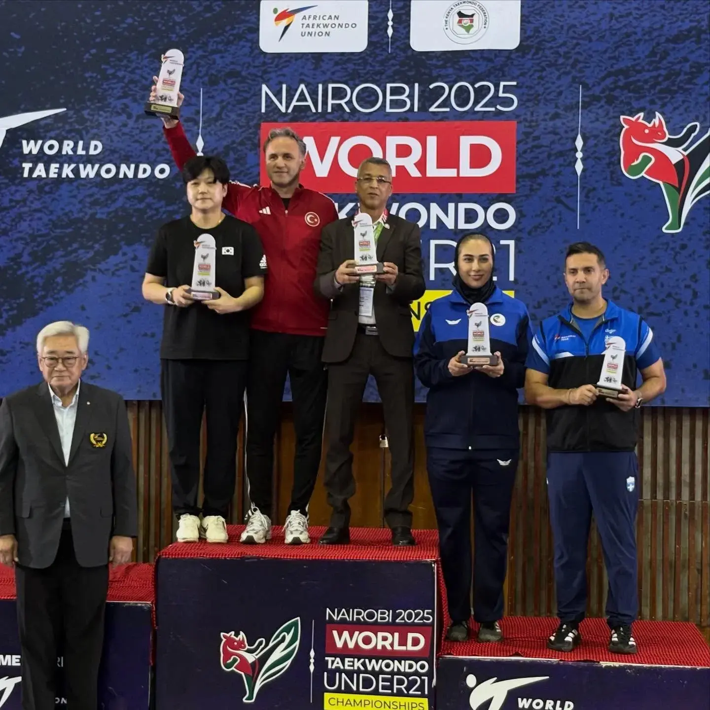 مهروز ساعی، سرمربی تیم ملی بانوان ایران، در مراسم توزیع مدالهای نخستین دوره مسابقات زیر ۲۱ سال جهان، بر روی سکوی چهارم قرار گرفت؛ جایگاهی که نشاندهنده تلاش ارزشمند دختران شایسته ایران است. در این رقابتها، مبینا نعمتزاده با کسب مدال طلا و هستی محمدی با مدال برنز، ایران را در میان ۷۵ کشور حاضر به رتبه چهارم رساندند. حضور مهروز ساعی در کنار این قهرمانان، نمادی از هدایت دقیق، پشتکار و نقش مهم کادر فنی در موفقیت نسل نوین ورزش بانوان کشور است.