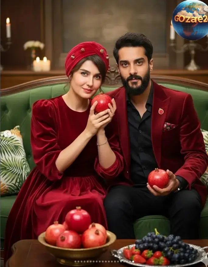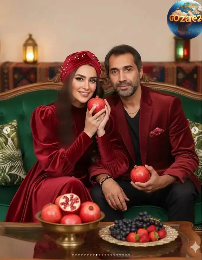 در ادامه، مجموعهای از تصاویر جذاب از بازیگران با لباسهای یلدایی نشان داده میشود. این تصاویر با کمک هوش مصنوعی طراحی و تولید شدهاند.