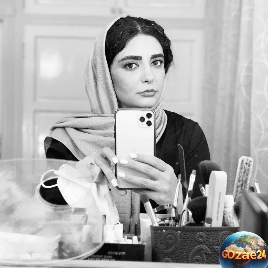 عکسی سیاه و سفید از لیندا کیانی در اتاق گریم با احساسات عمیق و تأمل برانگیز، نشان دهنده عمق هنر و احساسات او است.
