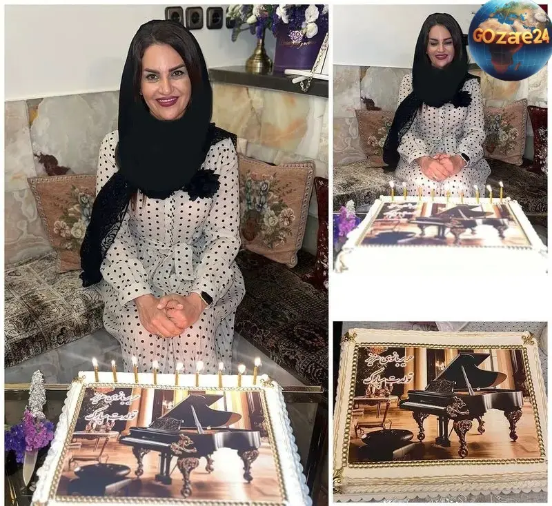 عکس خلاقانه کیک تولد همسر سالار عقیلی با نقش پیانو و طراحی سنتی