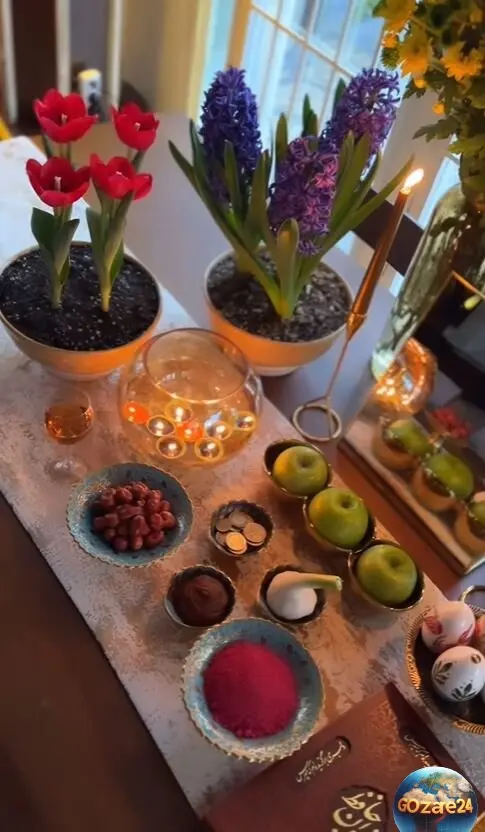 پست نوروزی پریناز ایزدیار با سفره هفتسین بینظیر، آینه و شمعدان مسی و کاسههای میناکاری شده، تصاویر دیدنی و دیزاین خاص را ببینید.