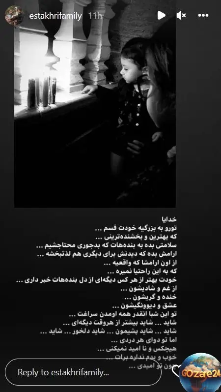 سپیده بزمی پور با انتشار استوری در اینستاگرام، عزاداری معصومانه پناه و نبات برای امام حسین(ع) را به اشتراک گذاشت.