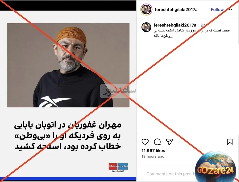 خبر جعلی درباره اسلحهکشی مهران غفوریان در اتوبان بابایی پس از توهین به نمادهای باستانی ایران، حقیقت ندارد و منبع موثقی ندارد.