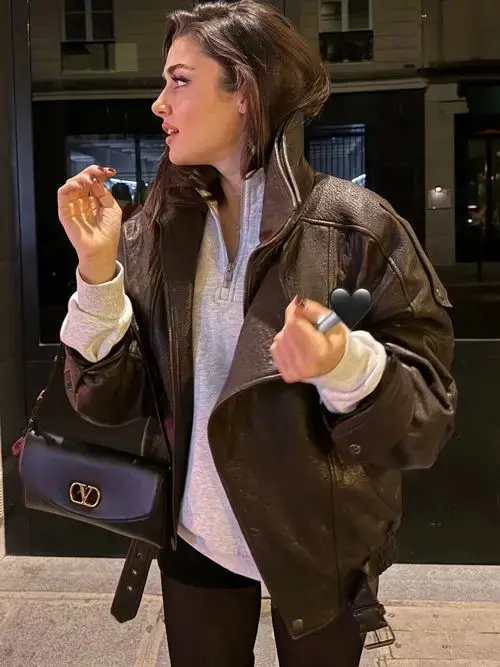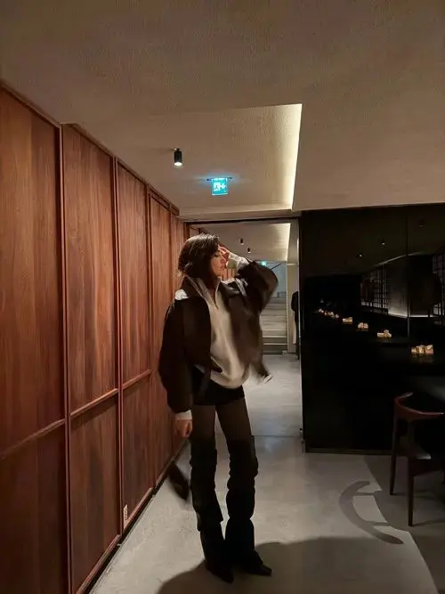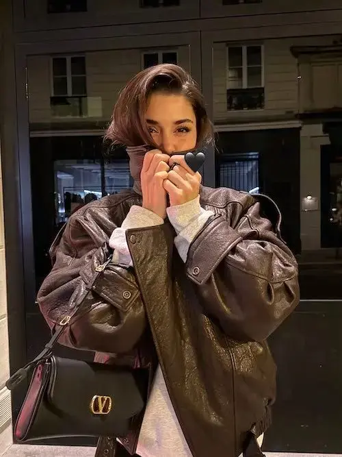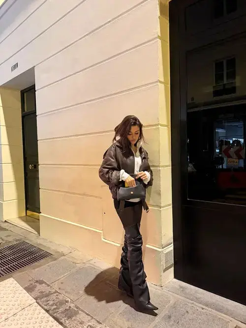 سوییشرت یقهزیپدار او، که حالتی اسپرت و راحت دارد، نقش پایهی این استایل را ایفا میکند، و در لایهی بعدی، کت چرم قهوهای، انتخابی خوشفرم و کلاسیک، بر جذابیت و عمق ظاهر او افزوده است. بوتهای بلند اسلوچی هانده، با فرم نرم و آزادشان، استایل او را کامل کرده و بر ظاهر شهری و مدرن او تأکید دارند. در کنار این ترکیب، کیف کوچک و مشکی او نیز نقش مهمی در تکمیل استایل ایفا میکند؛ یک اکسسوری کاربردی و هماهنگ که تعادل رنگی و بصری این تیپ را حفظ میکند. هانده در این پست بار دیگر نشان داده است که چگونه میتوان بدون نیاز به اغراق، با انتخابهای ساده اما هوشمندانه، استایلی چشمنواز خلق کرد.