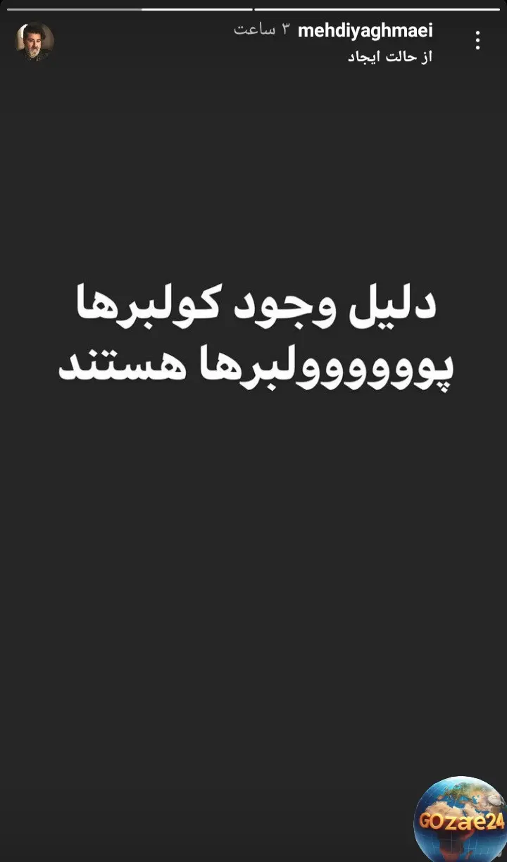 مهدی یغمایی علت کولبری را در استوری اینستاگرام فاش کرد و به پدیده کولبری واکنش نشان داد. بیشتر در هنر و رسانههای ایران.