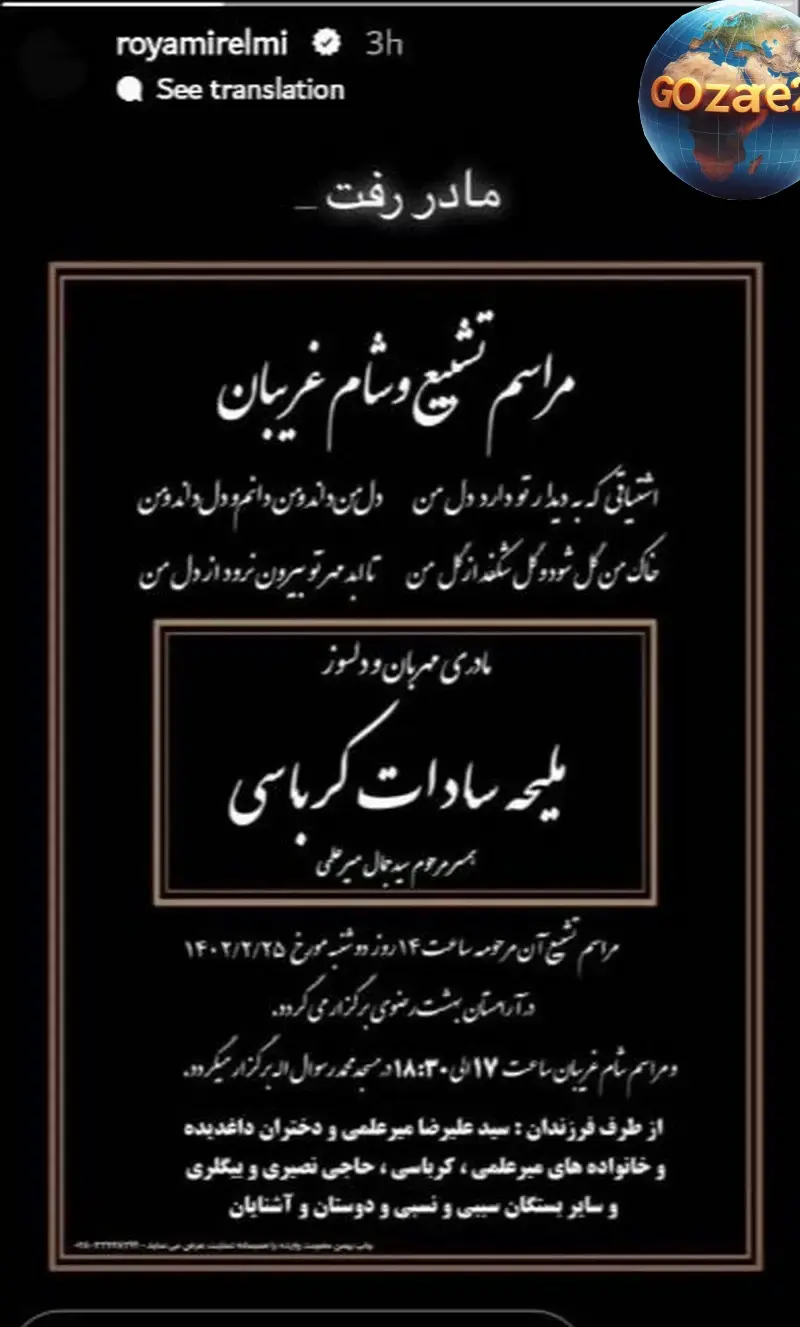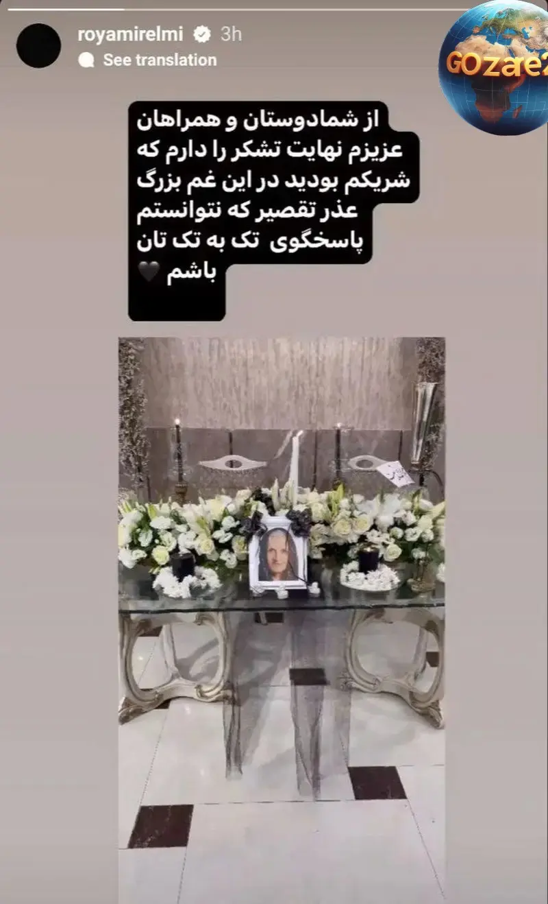 رویا میرعلمی در غم از دست دادن مادرش: مراسم ترحیم و میز عزای مرحومه ملیحه سادات کرباسی با حضور هنرمندان و خانواده