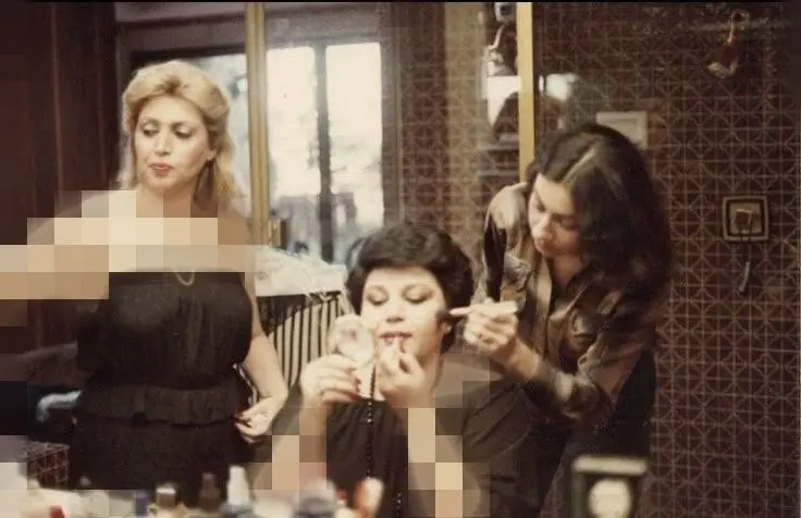 میز آرایش مملو از ابزارهای آرایشی، عطرها و بطریهای قدیمی است؛ جزئیاتی که نشاندهندهی یک سالن حرفهای و پرجنبوجوش در آن دوره است. حضور دو ستارهی محبوب موسیقی در کنار این دکور لوکس و زنانه، تصویری را رقم زده است که یادآور لحظههای نوستالژیک است و حالوهوای زیبایی، دوستی و سبک زندگی هنرمندان آن زمان را به تصویر میکشد.