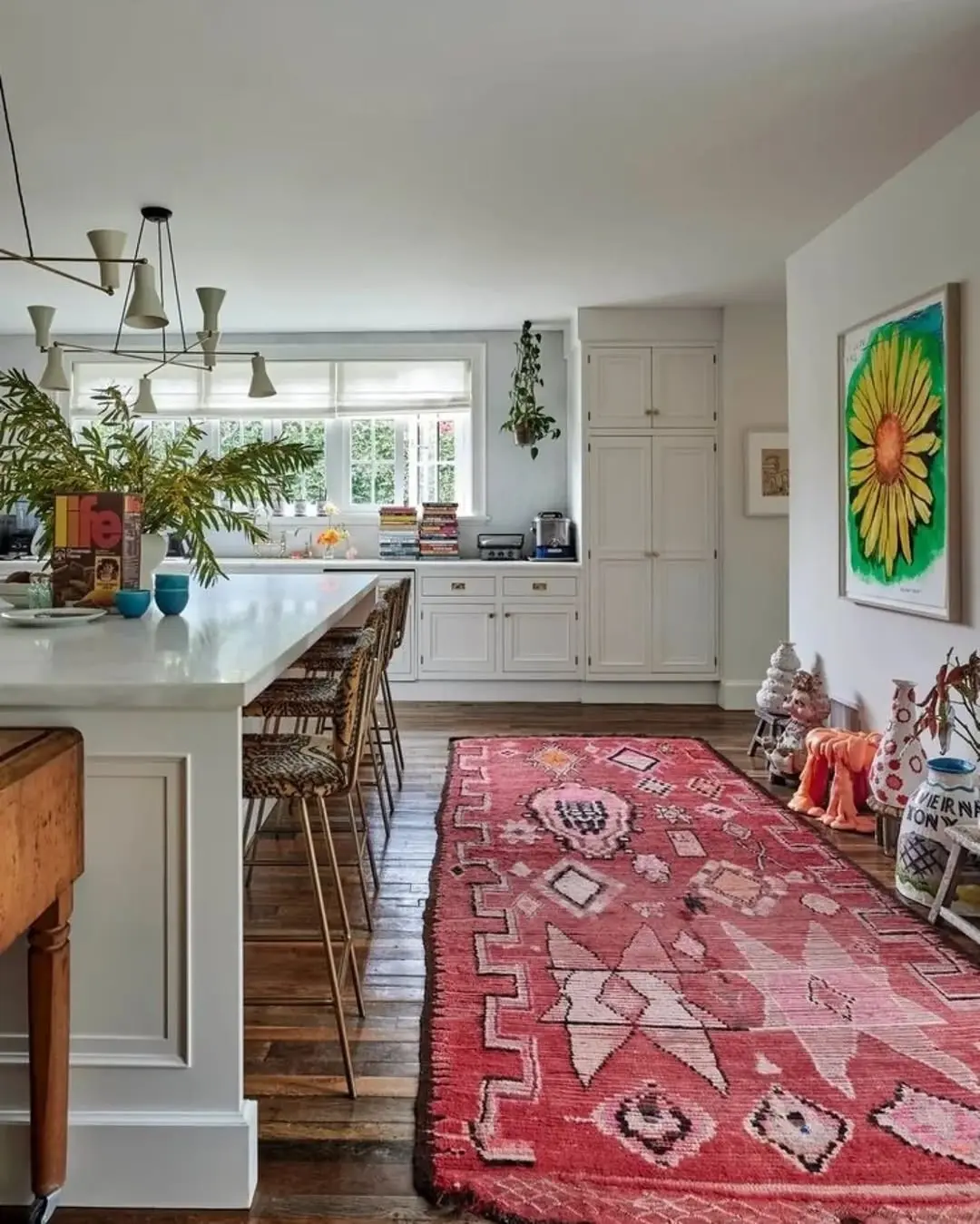 دکوراسیون منزل بنی به شدت ماکسیمال و پر از رنگها و جزئیات است؛ تقریباً هیچ گوشهای از فضا خالی نیست و ترکیب رنگها با سبک هنری صاحبخانه، هماهنگی جذابی ایجاد کرده است. اما نکتهای که بیش از همه نظر را جلب میکند، فرشها و قالیهای ایرانی هستند که در فضا به چشم میخورند و جلوه خاصی به محیط میبخشند.
