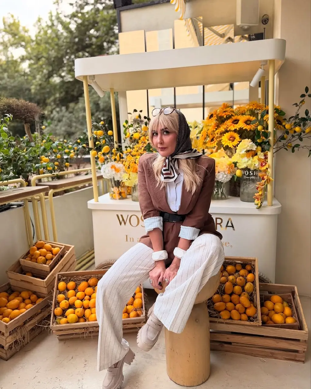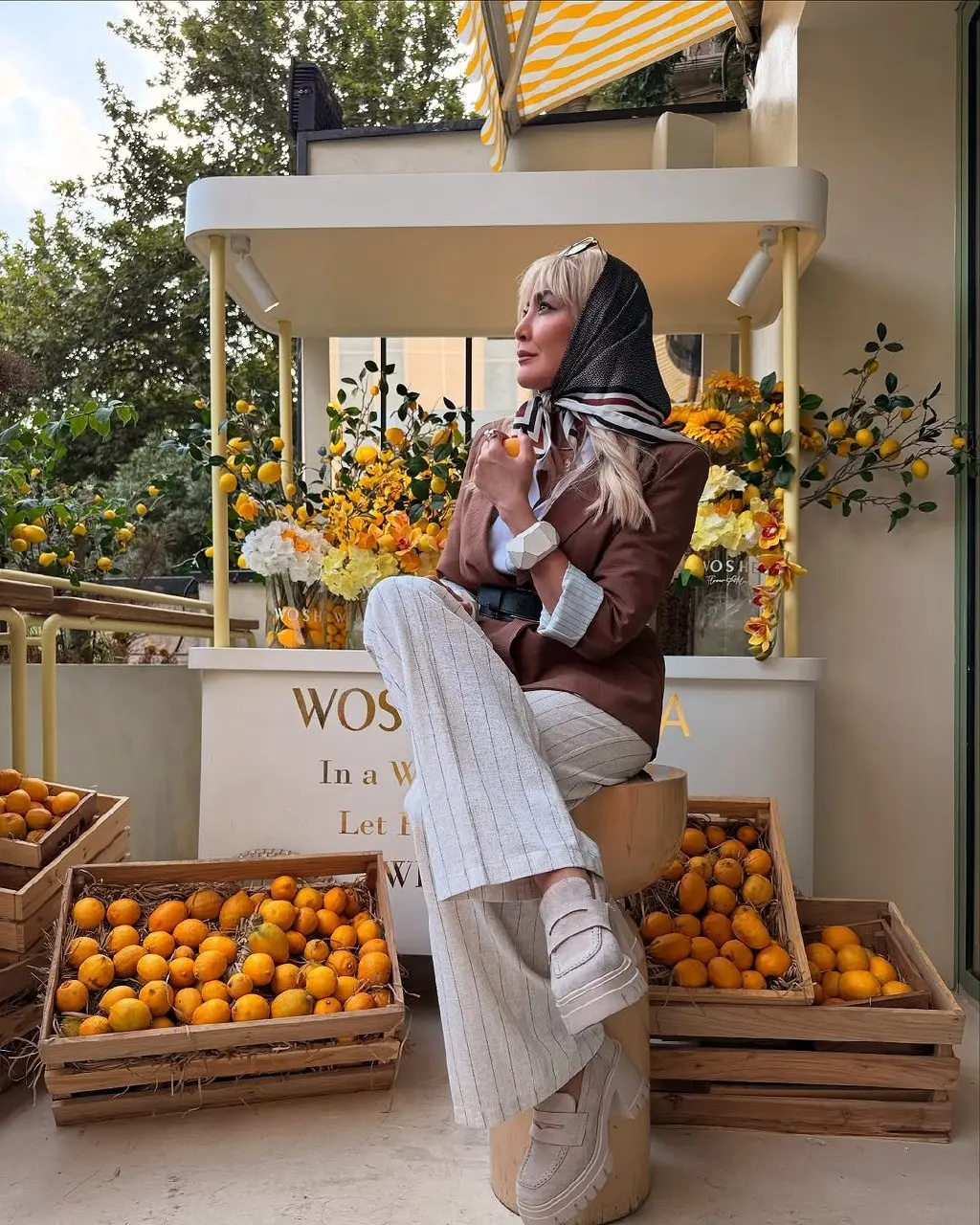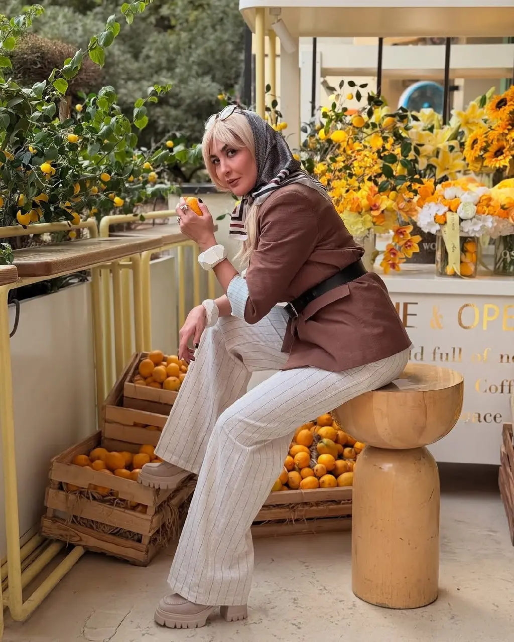 علاوه بر متن و چهرهی سرزنده او، فضای دلنشین و پرجزئیاتی که در عکسها مشاهده میشود، توجه را جلب میکند. گلهای زرد آفتابگردان، لیموهای تازه، و چیدمان و صندلیهایی که یادآور تراس یک کافهی ساحلی در جنوب ایتالیا است، این فضا را خاص و جذاب میسازند.