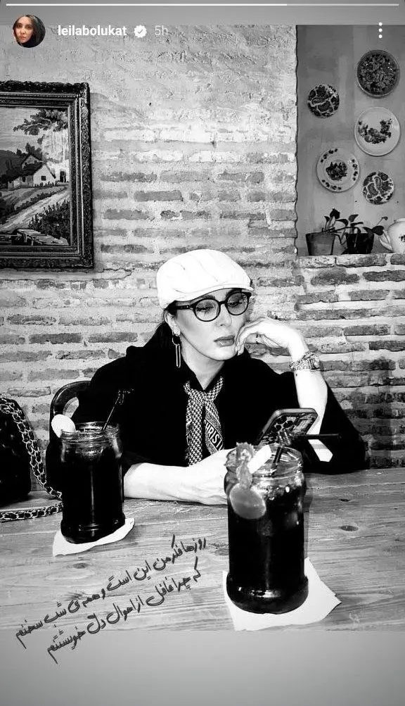 ژست کلیشهای لیلا بلوکات در کنار دیوار آجری کافهای دلنشین