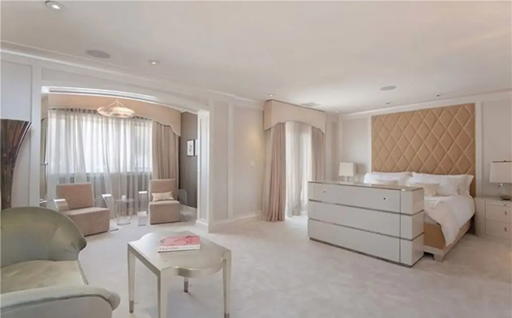 اتاق خواب آنجلینا جولی با استفاده از رنگهای کرمی و سفید طراحی شده است. این ترکیب رنگی، همراه با چیدمان ساده وسایل، فضایی آرام و دلنشین را ایجاد کرده است.