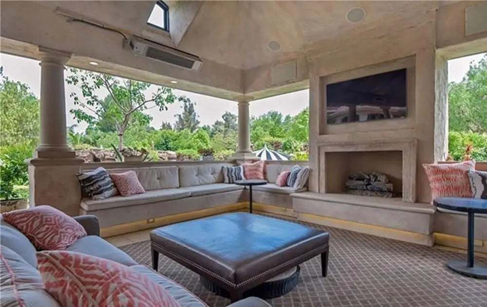 در فضای خارجی قصر بزرگ آنجلینا جولی، بخشهای متنوعی قابل مشاهده است. یکی از این قسمتها، آلاچیق سنگی و بزرگ است که برای سپری کردن اوقات فراغت طراحی شده و امکانات کامل برای پذیرایی از مهمانان در تجمعات خانوادگی را فراهم میکند.