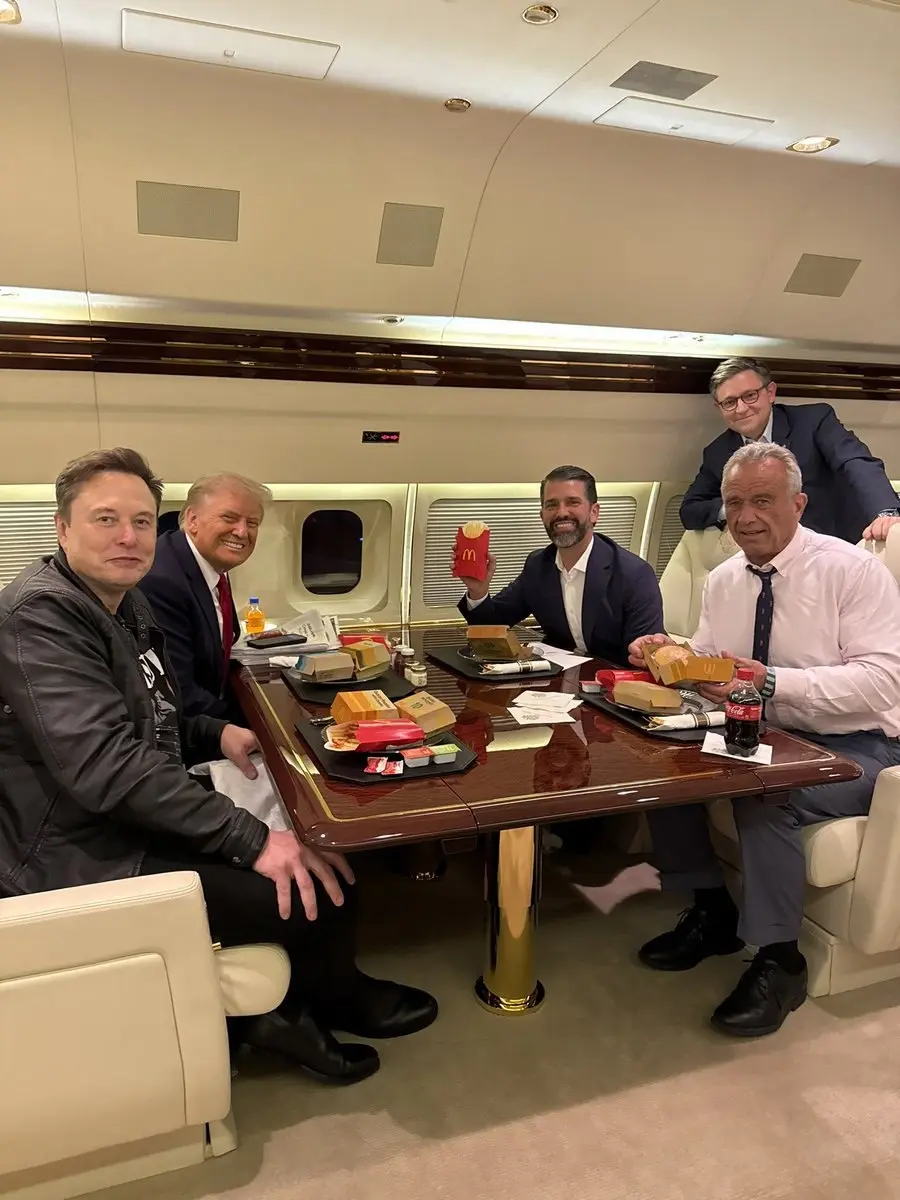 ترامپ و گروهی از همراهان نزدیک او، از جمله پسرش دانلد جونیئر، ایلان ماسک، رابرت کندی، وزیر بهداشت پیشنهادی و مایک جانسن، رئیس مجلس نمایندگان آمریکا، از ساندویچهای مشهور مکدونالد لذت بردند.