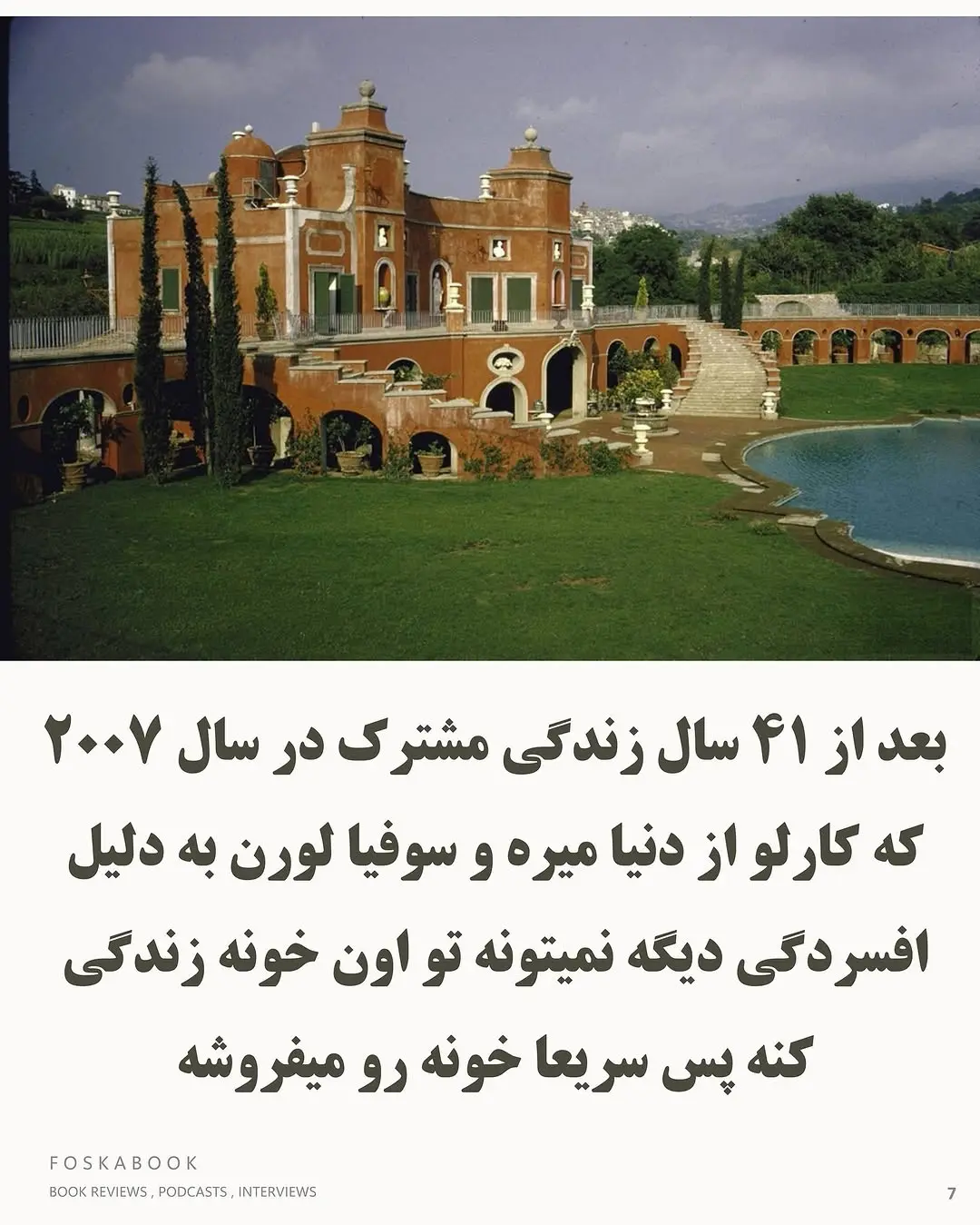 امروز به خانهای سر زدیم که در گذشته میزبان یکی از زیباترین بازیگران زن تاریخ سینما، سوفیا لورن، بوده است.