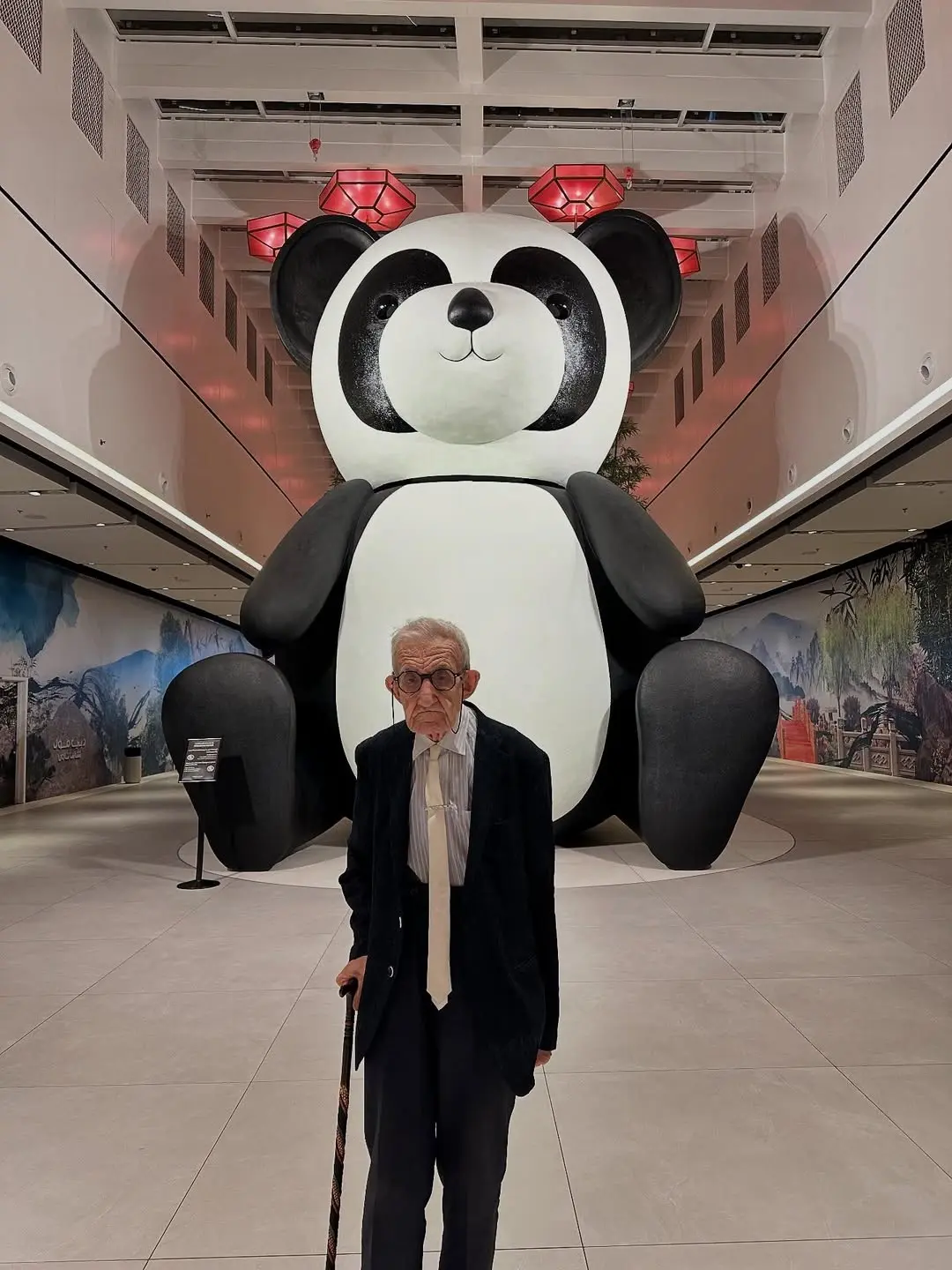 اردشیر کاظمی در کنار پاندای غولپیکر و معماری بینظیر چین