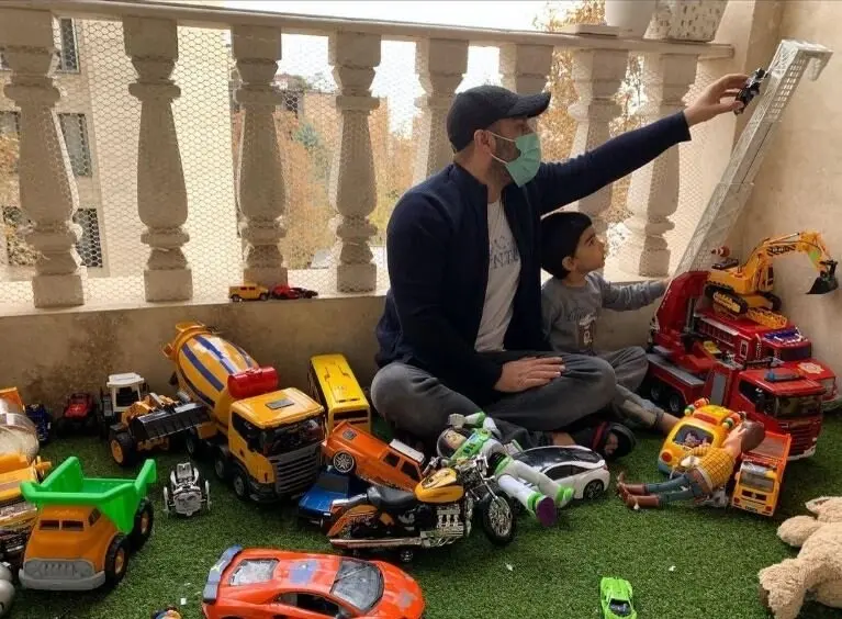 در تصاویری که پیش از تولد پسر محسن تنابنده منتشر شده بود، دکوراسیون جشن تولد به رنگ سفید و طلایی با کیک عروسکی جذاب دیده میشود. در تصویر دیگری، بالکن خانه با کفپوش چمن مصنوعی تزیین شده است که فضایی نیمهباز و مناسب برای بازی کودک فراهم آورده است.