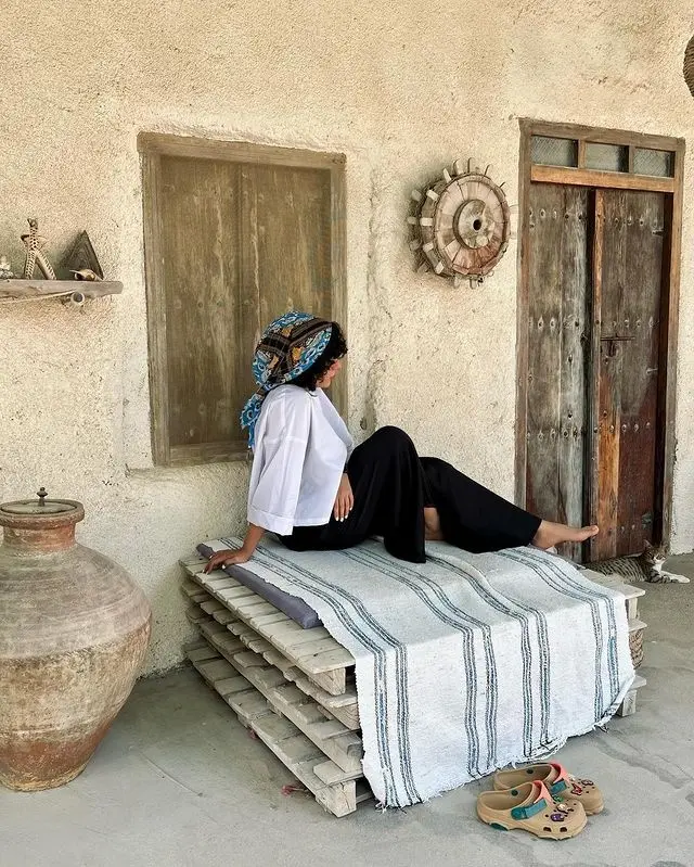 ترلان پروانه در اقامتگاه بومگردی جنوب ایران در دل طبیعت روی تختی لم داده است؛ تجربهای دیدنی در سفر به مناطق بومی و جذاب جنوب کشور.