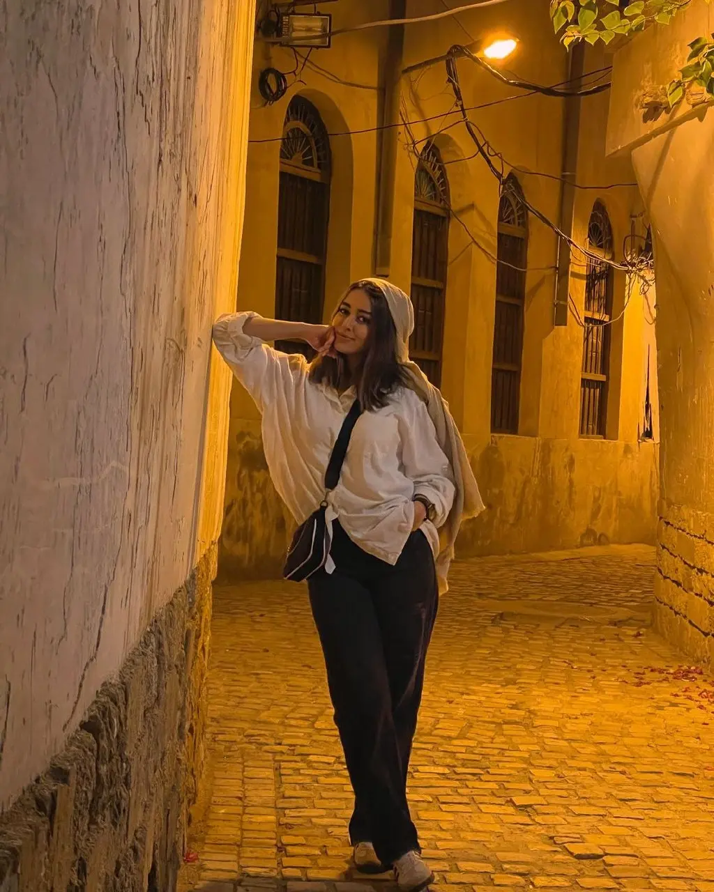 تصویر جدید مهلقا مینوش زاد در کوچه کاهی با معماری سنتی و حس نوستالژیک