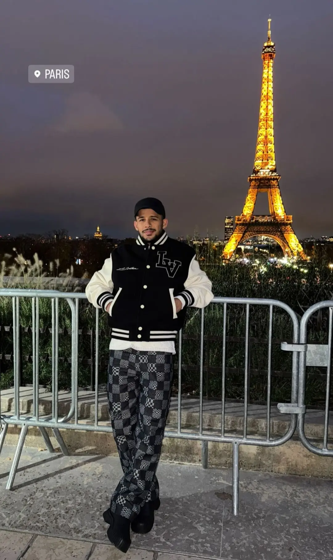 مهدی قایدی در کنار برج ایفل پاریس با لباس لوکس لویی ویتون