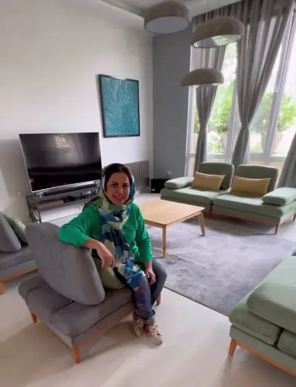 خانه خانم بازیگر با طراحی مدرن و سبک ساده دکور شده است. رنگ غالب در این فضا، طوسی خنثی است که نقش مهمی در ایجاد حس آرامش و هماهنگی دارد و از عناصر کلیدی دکوراسیون مدرن محسوب میشود. در این طراحی، از پردههای حریر ساده، مبلمان راحتی پارچهای بدون قاب چوب و تزیینات کمجزئیات بهره گرفته شده است تا سادگی و ظرافت سبک مدرن حفظ شود.