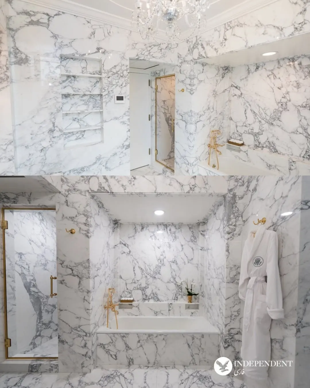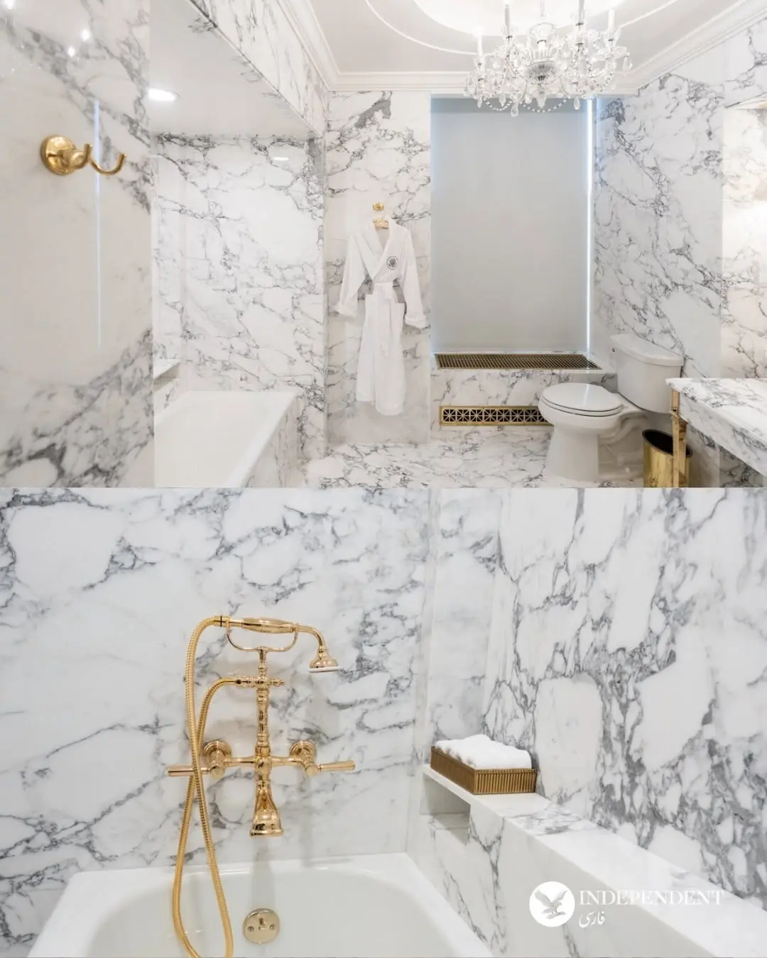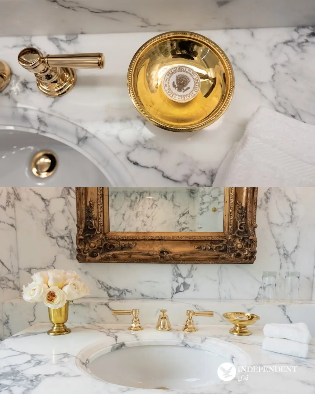 بازسازی لوکس حمام لینکلن در کاخ سفید توسط ترامپ با سنگ مرمر سیاه و سفید